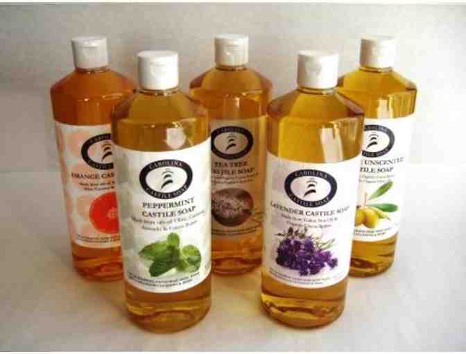 Liquid Castille soap made right here in North Carolina from organic plant oils such as Organic Olive Oil and Organic Cocconut Oil. This auction item will get you a box of 32-ounce bottles of five different scented Carolina Castille Soaps. Keep them all for yourself or give them away as gifts.