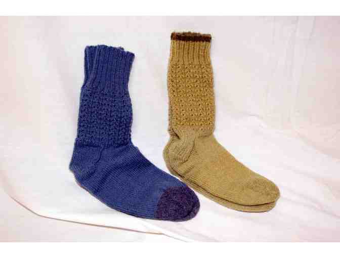 Keep your feet warm with these beautifully-crafted, handmade wool boot socks with lace pattern; great winter colors. Machine washable and dryable. Terrific stocking stuffers.