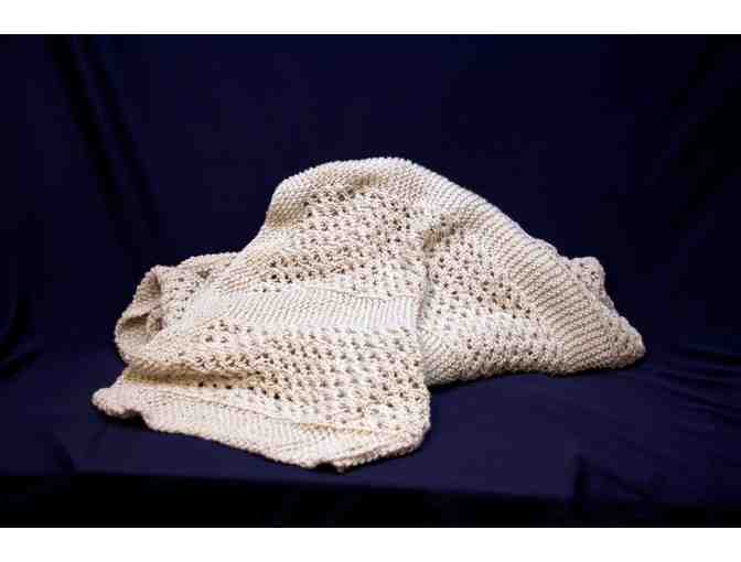 This beautiful, handmade, lap blanket will be sure to keep you warm on a chilly fall or winter day. The natural color goes well with any decor and is washable.