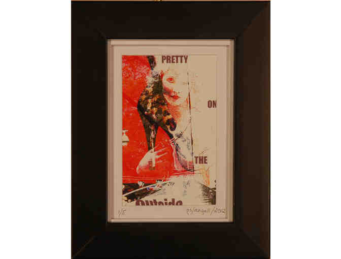 “Pretty on the Outside” is an assemblage of photographic images with a somewhat tongue-in-cheek social commentary. The altered iconic images create a soft, ethereal composition.
