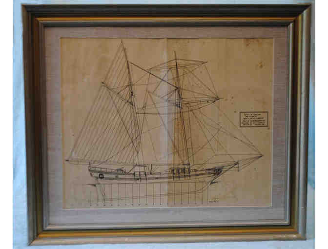 Signed and dated "Conover 40' l.c.; ink construction drawing, measures approximately 16 1/2 x 20 1/2 in.