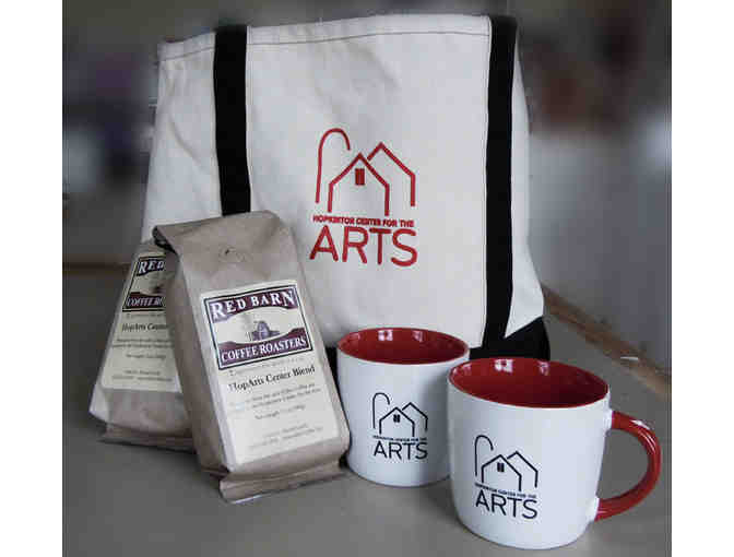 The perfect gift for the coffee loving artist! A Hopkinton Center for the Arts(HCA) tote bag, 2 HCA coffee mugs, and package of Red Barn Coffee's special Hop Arts Center blend and Artist Blend coffee.