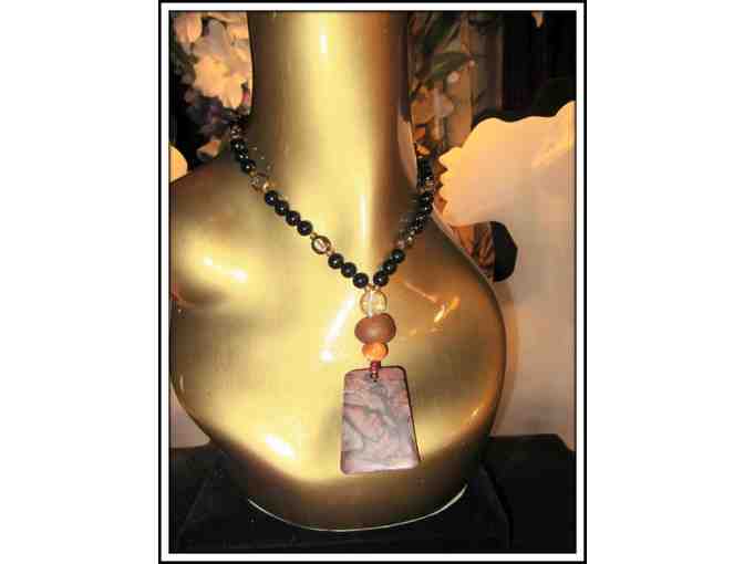 Featured Components: Gemstone Pendant, Black Onyx, Ancient Glass Bulbs, Rhodonite.