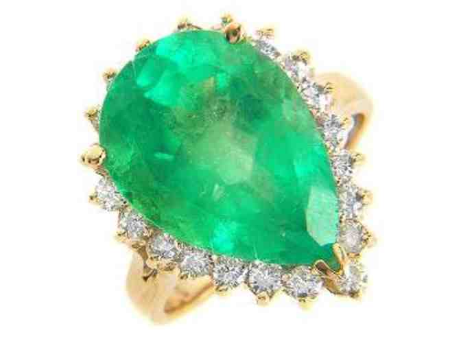 21 Round Cut Diamonds, H/S-I clarity Pear Shaped Columbian EMERALD Solitare: 8.25 carats!