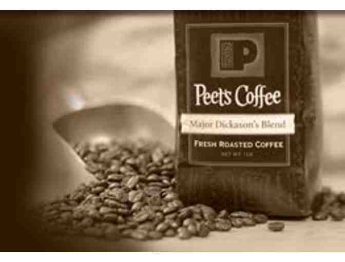 Lot 162 features a mixture of items from Peet's Coffee & Tea, including their 16 ounce tumbler, 1 box of English Breakfast tea, and 1 package of choclate toffee almonds.