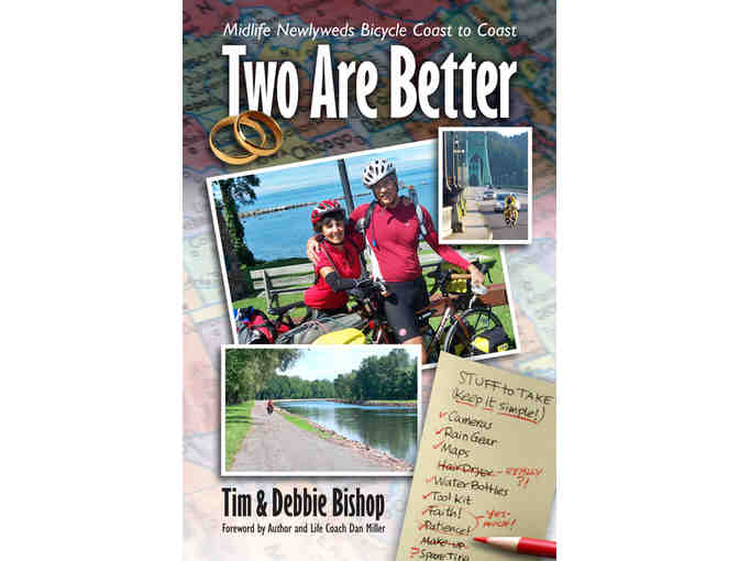 Two Are Better: Midlife Newlyweds Bicycle Coast to Coast is a love story, a captivating bicycle adventure, and an inspiring testimonial of faith, all in one. When a long-standing prayer is answered with a first-time marriage at age 52, Tim and Debbie Bishop’s faith and sprouting love are tested on their self-supported bicycling honeymoon across America.