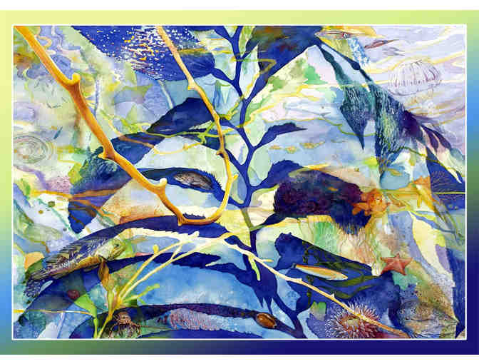 An 11.5" x 16" injet print created, signed and donated to Ocean Futures Society by internationally known artist Margery Spielman. "Kelp Forest" is an inkjet archival print from the original watercolor painting on a 16" x 20" acid free, museum mat board.