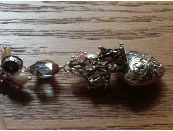 This handmade keychain was designed and donated by Terry Davis and features a white basset hound, a large heart charm, a crown and a dog dish along with assorted beads.