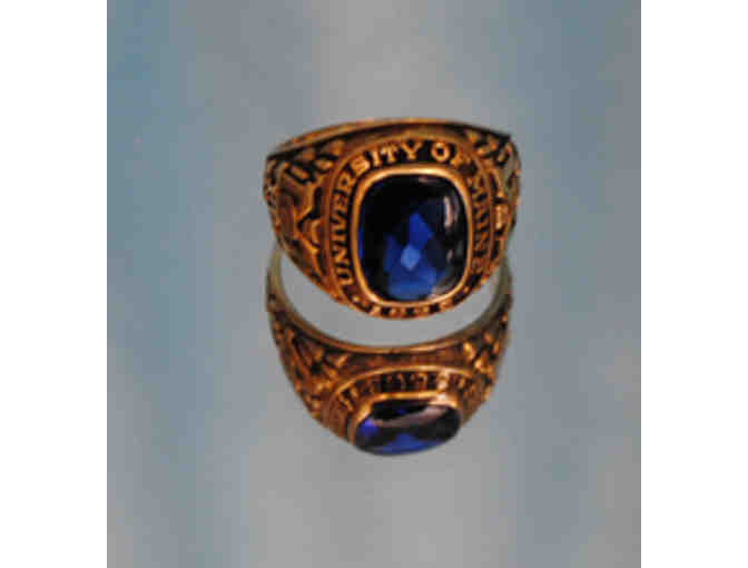 Own a unique piece of UMaine memorabilia; this ladies ring is from the Class of 1958 and features a blue stone. 10k gold and is approximately size 6.