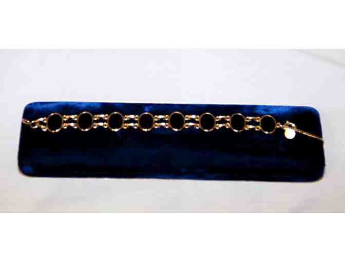 This gently-worn Onyx chain bracelet with 14K overlay would look beautiful on any arm. Fits small to medium wrists.