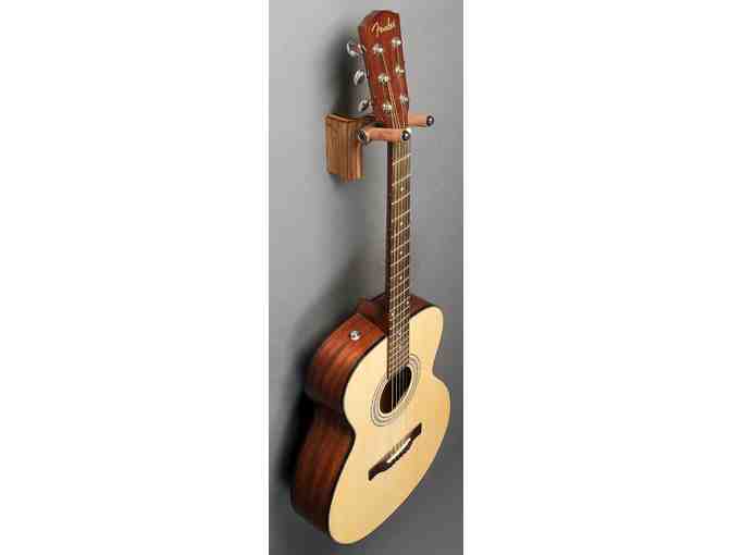 The Cordoba La Playa Travel Guitar is a part of surfer and musician Donavon Frankenreiter's signature line of guitars and ukuleles. It is a half-sized, cutaway model, featuring a built-in pickup, designed for travel and beach playing. Comes with Take A Stand's hardwood guitar wall hanger – American cherry with curly maple inlay. Gold powdercoated hardware with suede leather wrapped surgical rubber supports. Mounting hardware included.