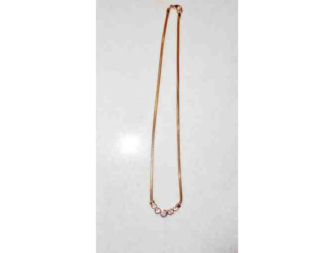 15" gold cobra chain wih 5 sparkling CZs. Very pretty and rich looking.