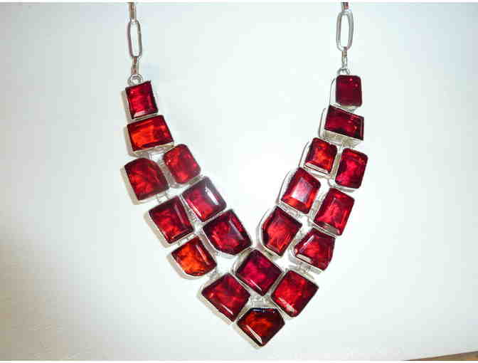 Silver and garnet studs make this a gorgeous and impressive necklace. Perfect for the upcoming holiday season! Also bid on the garnet earrings that go great with this necklace.