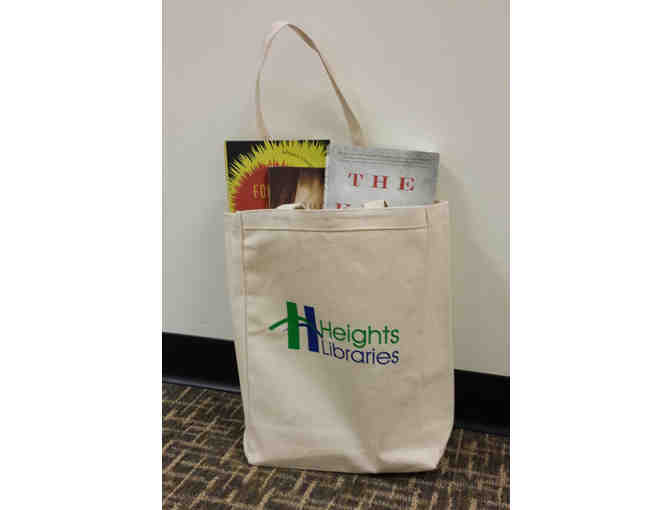 A lovely canvas Heights Libraries bag filled with 10 terrific novels.