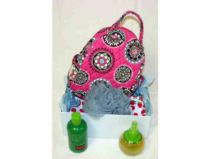 This beautiful Vera Bradley, insulated, lunch box is just the item you need to make a fashion statement at work or school. New with tag. In addition enjoy a body puff, 3 cosmetic bags, body lotion by Bath & Body Works and Nutcracker Sweet Shimmer by Bath & Body Works.