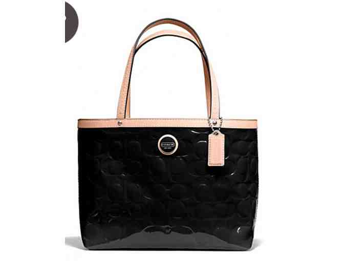 Coach Signature Stripe Embossed Black Patent Leather Tote - New with Tags