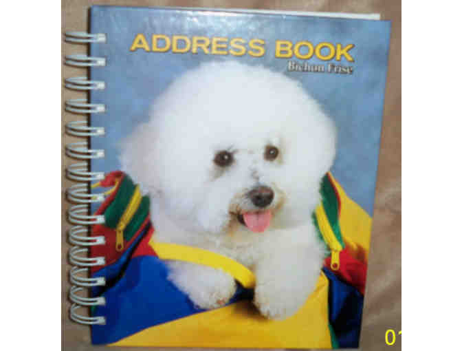 A great way to keep addresses, phone numbers and emails organized, this essential address book features our beloved Bichon Frise. Address book measures 6.5” x 7.5” and is hardcover, wire-o bound. It has alphabetical tabs and includes a perpetual event calendar in the front. 22 Full color Bichon photographs are included on the tabbed divider pages.