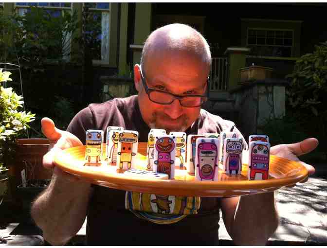 Recieve your own family size set of ZenBots from the land and hand of painter Gary Hirsch. One for every member of the family! "They are", he says, "programmed to calm you down." Especially great for kids.* (And famous people!)