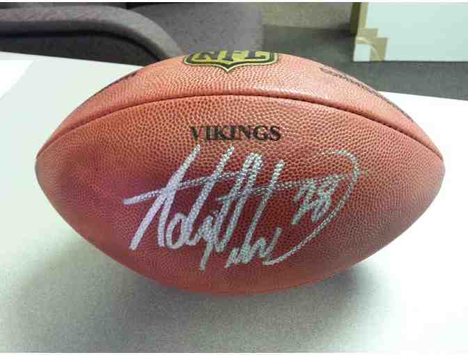 One Vikings NFL Football, personally signed by Adrian Peterson. Donated by the Minnesota Vikings.