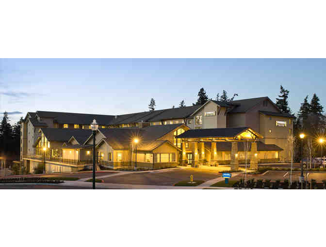 Enjoy a spacious luxury One Bedroom Suite for two nights with breakfast, two rounds of golf, 2 buckets of balls and lunch at the Horbour Pointe Golf Course and dinner for two at the Mukilteo Sports Grille.