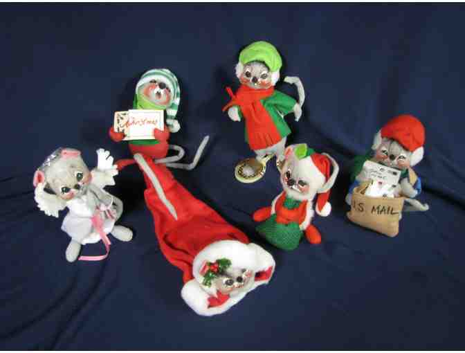 Six original Annalee Dolls made in Meredith, NH. Five of the six dolls have the original tag and code number. The Santa Mouse is from 1967 with the others from the early 1990's. These beautiful characters will add to your Christmas collection and be a favorite for many years to come.