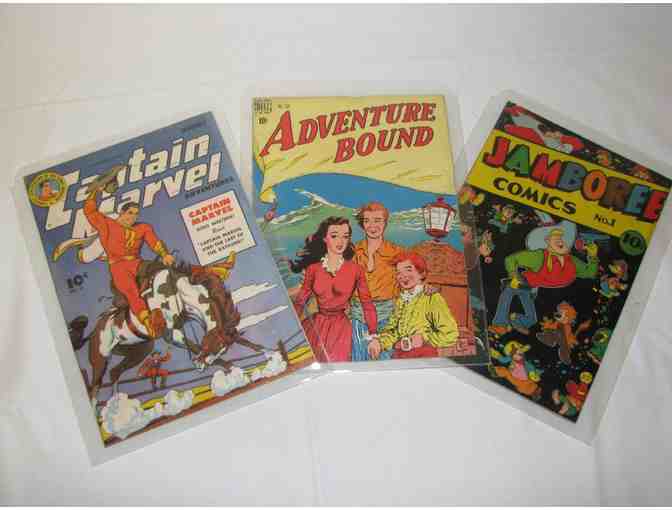 Grab a piece of the past when you are the high bidder on three vintage comic books: Captain Marvel, Adventure Bound, & Jamboree Comics. Each comic book is in excellent condition and in a plastic sleeve. These will surely bring back your childhood memories.