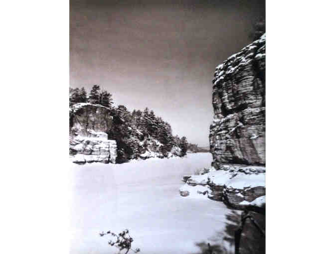 Bring the beauty of the Wisconsin River Dells into your home or office with this 11X14 winter scene from the H. H. Bennett Studio. Produced by the Wisconsin Historical Society, this digital print comes matted on a 16x20 mat embossed with H. H. Bennett’s signature. Scanned from the original glass plate taken by H. H. Bennett, the photographer whose iconic images made the Dells of the Wisconsin River famous.