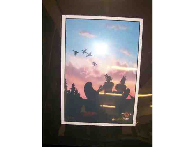 This is a really beautiful Native American picture with two people canoeing at dusk. Visit Affordable Framing downtown!