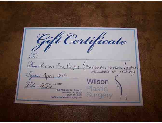 $250 Gift Certificate from Wilson Plastic Surgery for skin health services and products (injections not included).