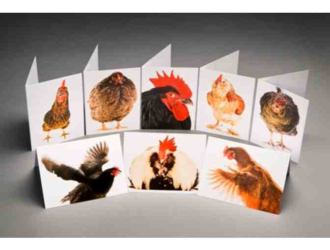 Chickens are "in" these days, as the "locavore" food movement inspires people to raise them in their back yards. If you're a chicken farmer, urban or rural, or have friends raising chickens, or you simply like seeing chickens cleverly posed, you'll enjoy this package of eight chicken greeting cards, courtesy of noted art and portrait photographer Rolf Hagberg.