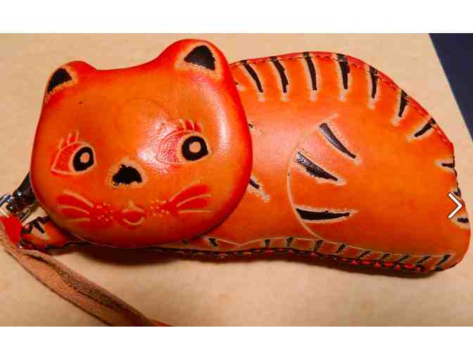 Artisan designed, hand-tooled leather Cat purse