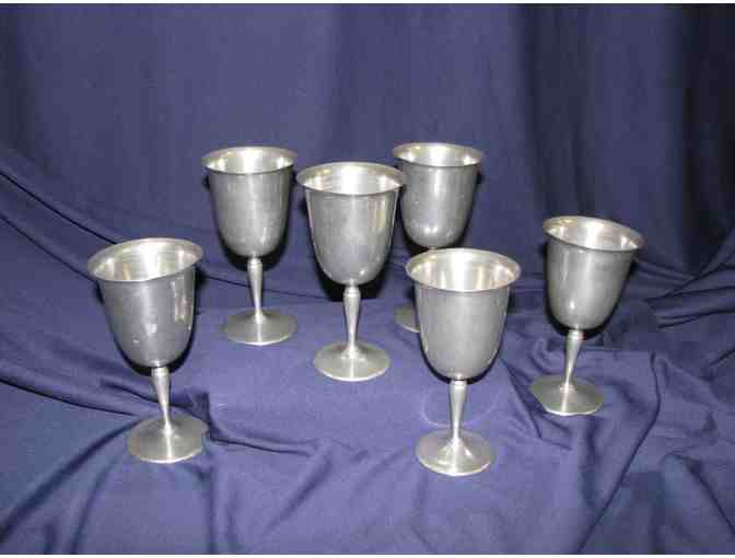 Mid-20th century pewter goblets have wonderful patina consistent with their age ... perfect addition to the true early American decor of New England.