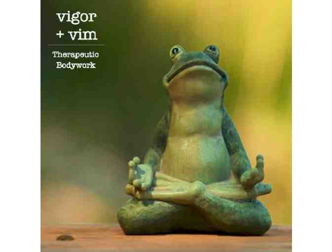 Rejoice! The gift of wellness awaits you. This auction item is good for 75 minutes of bodywork, courtesy of Vigor + Vim in Raleigh. NCLMT #12493.