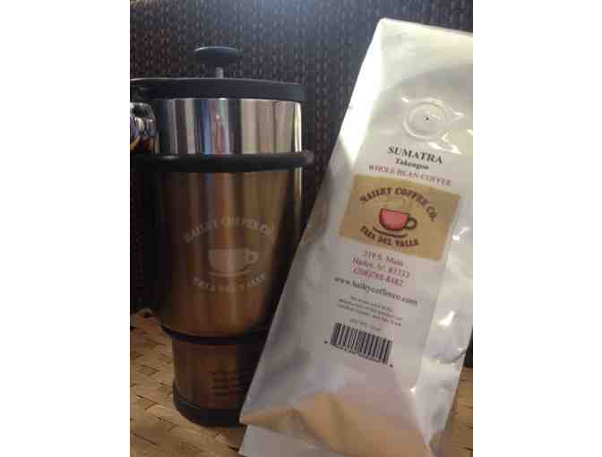 Hailey Coffee Company- All-in-One insulated travel press mug & pound of whole bean coffee