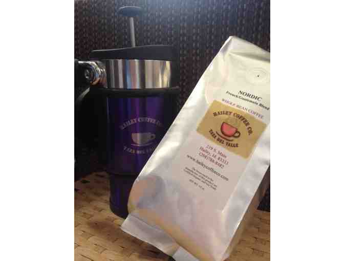 From Hailey Coffee Co. comes a double insulated all-in-one travel press mug and 1 pound of NORDIC French/Guatemala Blend Whole Bean Coffee.