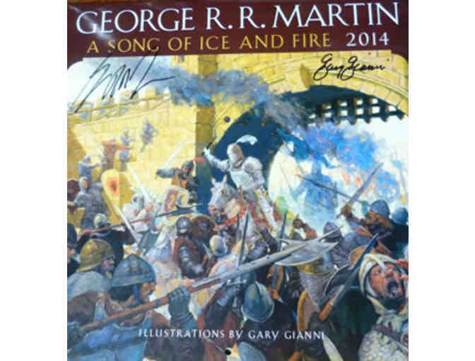 Calendar is signed by author George R. R. Martin and calendar illustrator, Gary Gianni.