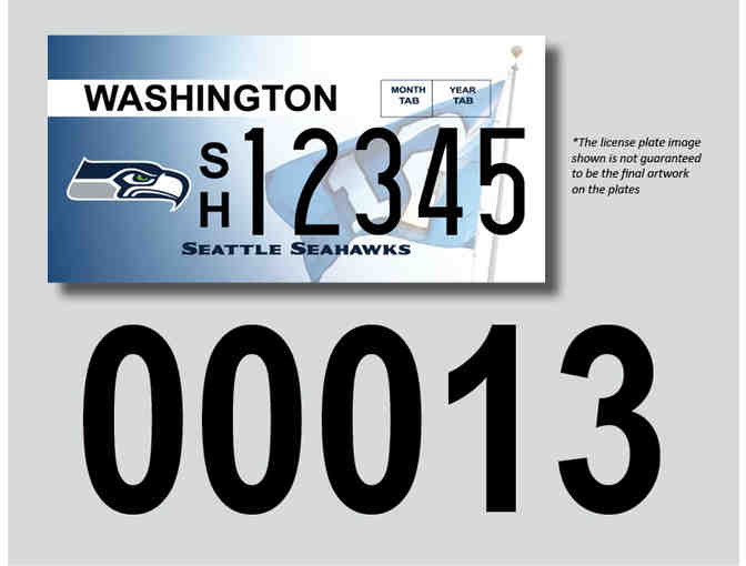 The license plate design includes the Seahawks logo, an image of the iconic 12th Man flag, and “00013” in black lettering. You'll get a set of front and back plates that will let you show your Seahawks spirit year-round.