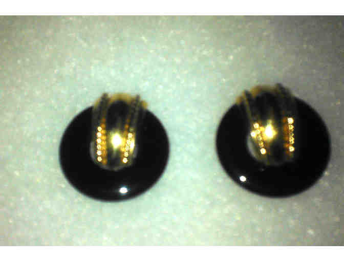 14 Carat Gold and Black Onyx earrings. 1&1/16" in diameter. Perfect condition. For pierced ears.