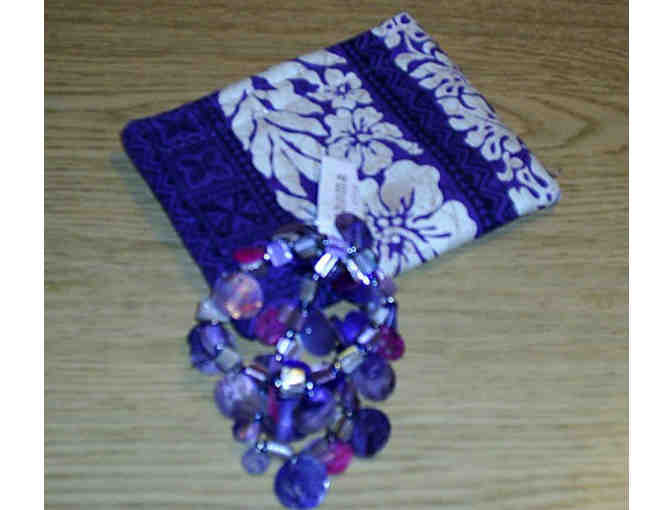 Lavendar Shell Bracelet with Purple and White Hawaiian Pouch