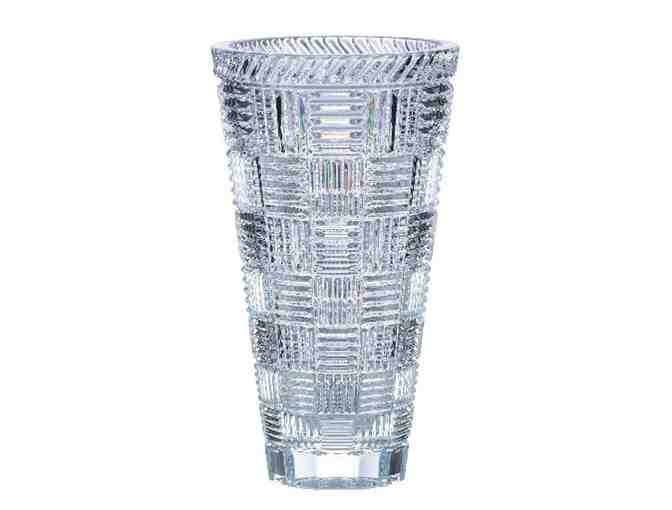 With its intricate, geometric design, this collection of fine European crystal will add a dose of modern glamor to your home. The stunning set includes an 8-inch vase, a 10-inch vase, and an 8-inch bowl.