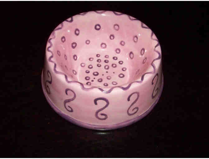 Hand painted ceramic in pink and purple. Holds 3 cups of water.