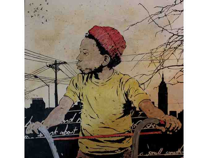 Artist bio: Chris Stain grew up writing Graffiti in Baltimore, MD in the mid 1980’s.  Through printmaking in high school he adapted stenciling techniques, which later lead to his work in street stencils and urban contemporary art.  Compared at times to the American Social Realist movement of the 1930’s and ‘40’s, Chris’s work echoes his upbringing and the people who helped shape his mental and physical landscape. His work illustrates the struggles of the unrecognized and underrepresented individuals of society.