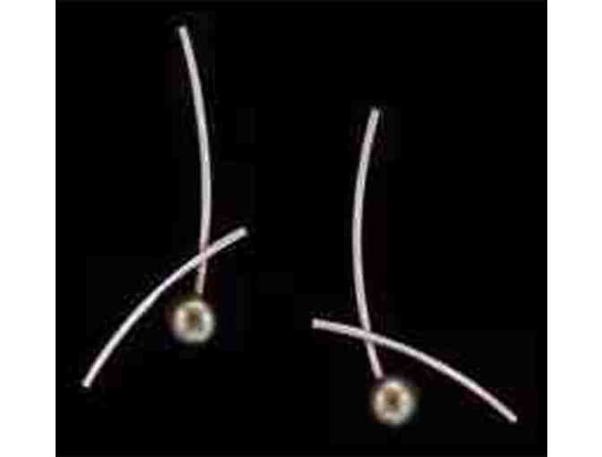 Contemporary sterling silver earrings with dark gray pearls on sterling silver posts. For pierced ears. Posts are half an inch from the top.
