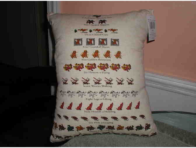 A Dog's Christmas pillow. Adorable doggie version of the 12 Day's of Christmas (partridge in a pear tree). New with tags.