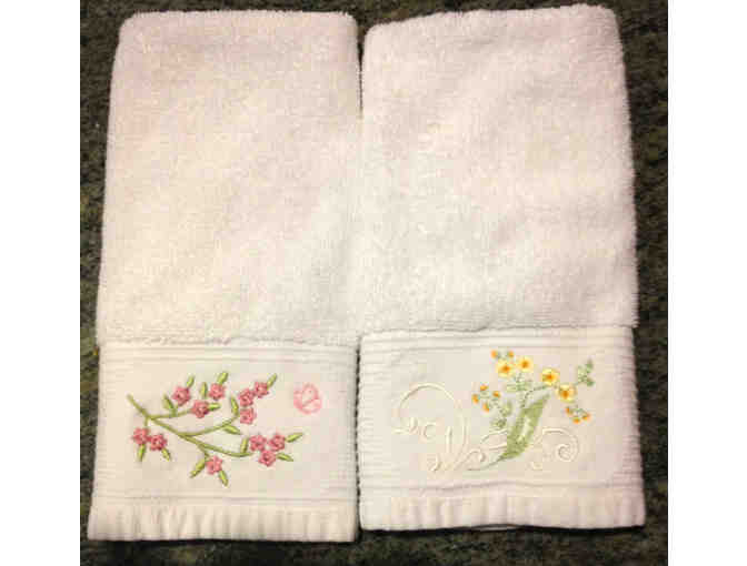 Two White Flower Hand Towels