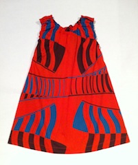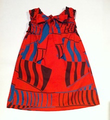The awe-inspiring beautiful red dress is made of cotton and the sweet show-stopper of a cardiganwith its swinging bonbons is made of acrylic wool angora. Both are a Size 4-5T.