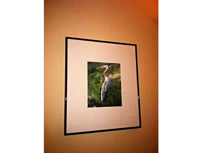 This lovely framed watercolor of a great blue heron, created by Waterford, Wisconsin artist Patrick Dean, is the perfect image for the home or cabin of a river lover. Who has not been surprised and awed by the sound and flight of this great bird while moving down a river?