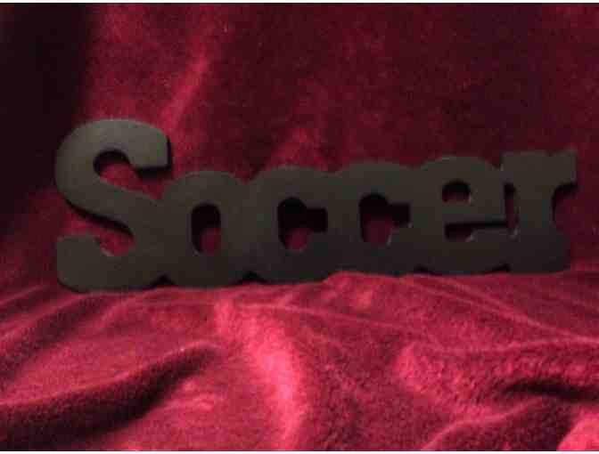 Wooden wall art for the soccer lover. 6.5 inches x 19 inches