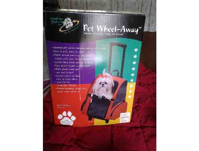 This red carrier is a perfect way to transport your fluff when walking is not an option. It can be used as a wheeled carrier, backpack, car seat or bed.