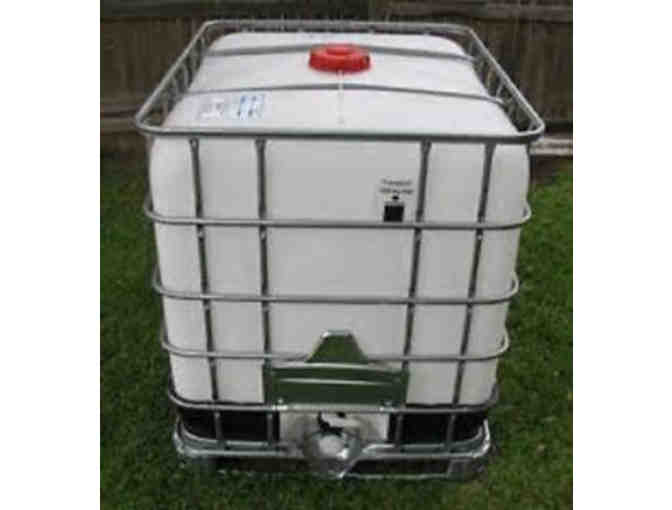 FDA Approved 275 gallon Polyethylene IBC Tote Tank with galvanized steel 4 way pallet and protective cage. 6" Filler Cap Ball or Barrel Valve. Safe for drinking water, sap or other food stuffs.